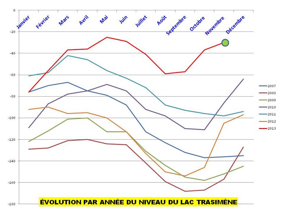 A 08h00, le 23/12/2013, le niveau d’eau du lac Trasimène