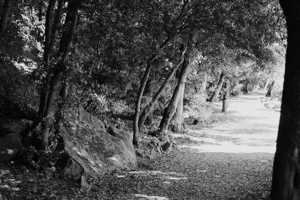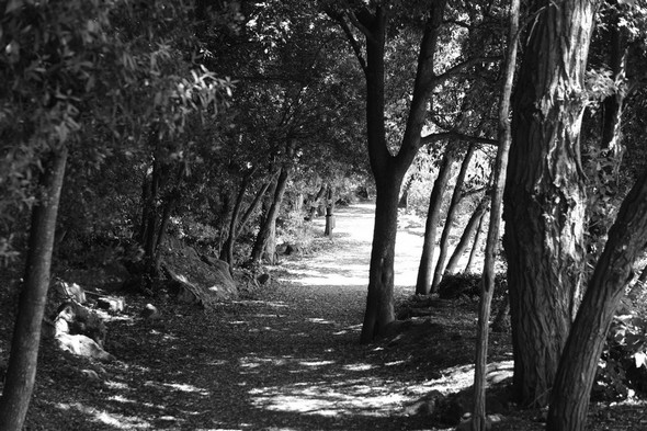 Chemin faisant, j’ai pris quelques photos couleurs jusqu’au moment où j’ai été frappé par une évidence : la belle lumière printanière qui s’infiltrait dans le sombre sous-bois caractéristique du lungolago constituait une irrésistible invitation à user du format « Noir et Blanc ».