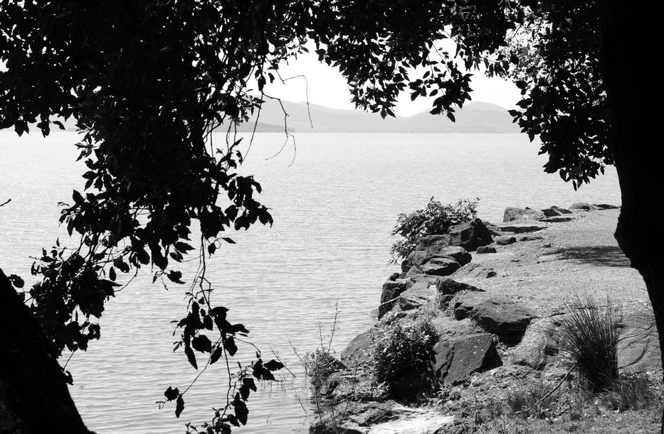 Chemin faisant, j’ai pris quelques photos couleurs jusqu’au moment où j’ai été frappé par une évidence : la belle lumière printanière qui s’infiltrait dans le sombre sous-bois caractéristique du lungolago constituait une irrésistible invitation à user du format « Noir et Blanc ».