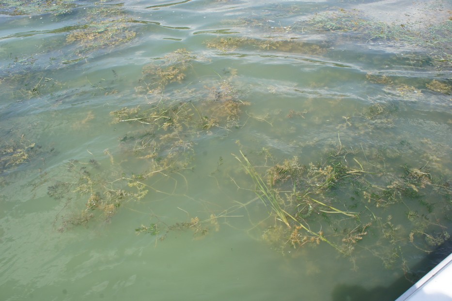 En naviguant sur le lac Trasimène, nous sommes entourés en surface d’une multitude d’entassement d’algues – AOÛT 2012 .
