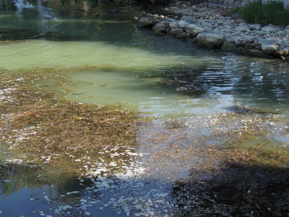 - coloration et parfois dystrophisations (état extrême de l’eutrophisation, qui se traduit par la mort des organismes animaux et végétaux supérieurs) des eaux ou anoxies, avec métabolites secondaires donnant un mauvais goût à l’eau