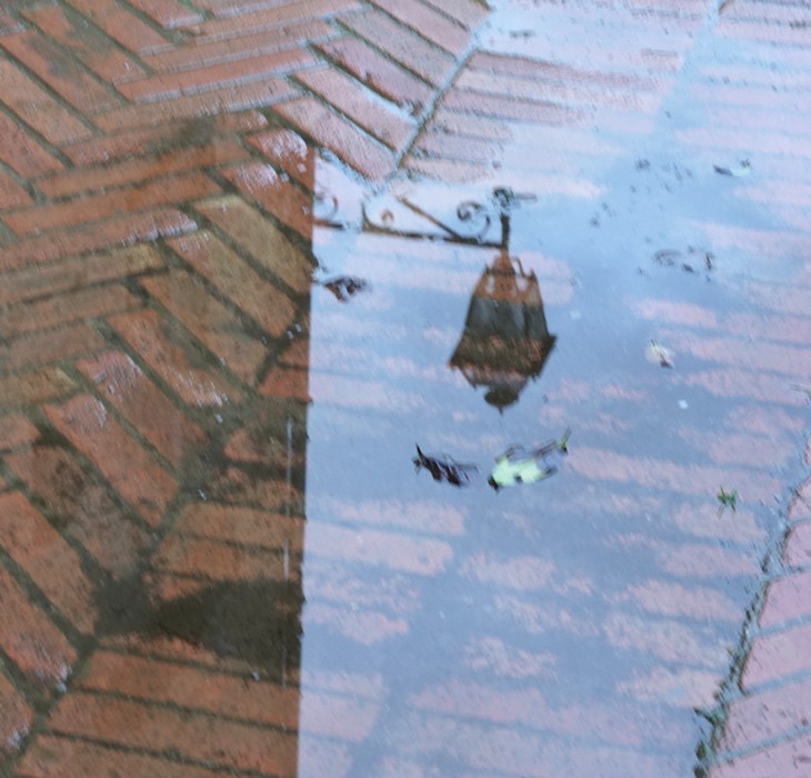 Mais cette fois je ne me suis intéressé qu’aux reflets rendus possible par l’accumulation de l’eau de pluie via Guglielmi et à la strada di lungolago.
