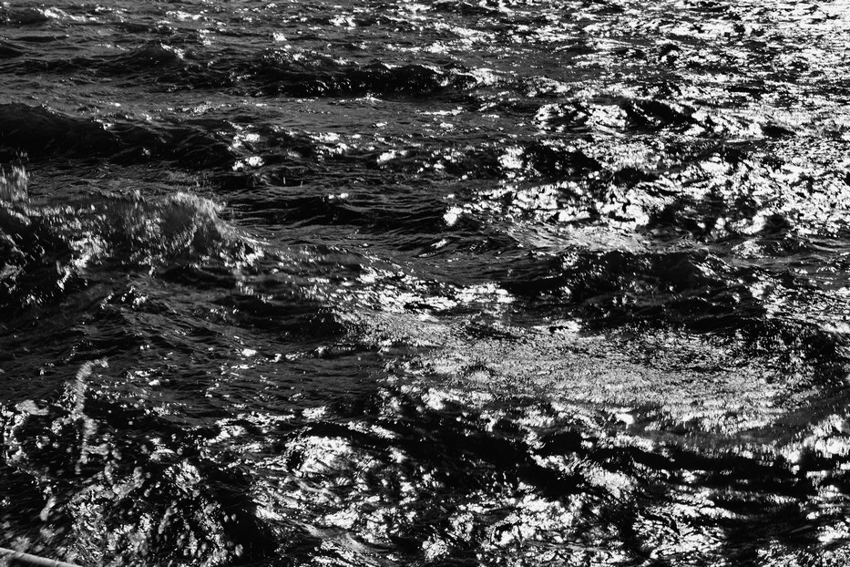 Je prends, en couleur ou en noir et blanc, une photo de la surface du Trasimène, en recherchant ses différents allures : vagues, sillages du passage d’un bateau, ondes lentes poussées par un vent léger, différents types de dispersion de la lumière, etc.