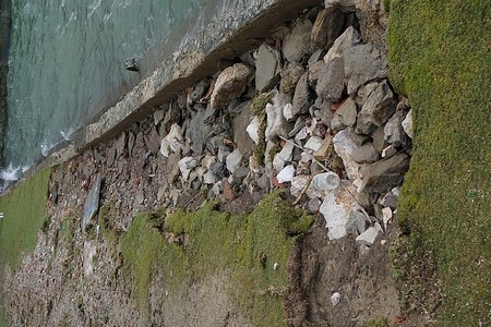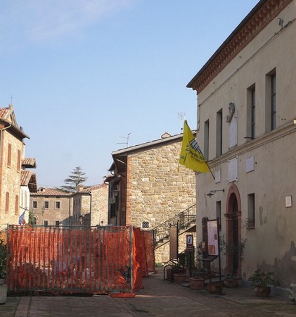 Solo uno stretto passaggio a destra del cantiere permette di proseguire lungo il suo percorso.