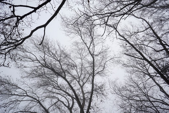Une portion de la voûte hivernale du lungolago par temps de brouillard épais : Une architectonique sylvestre soutenant un dôme nébuleux !