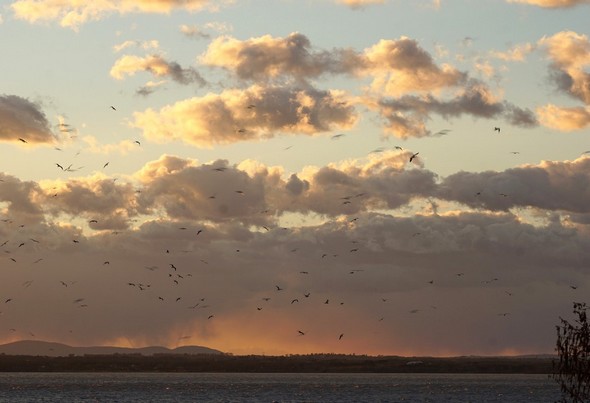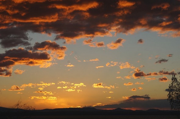 Tel un four que l’on gorge de combustible, le ciel se charge. A sa base, tel un brûleur, le soleil se prépare à mettre le feu. Alarmé, un vol d’étourneaux s’agite en tous sens. 16 septembre – 16:43