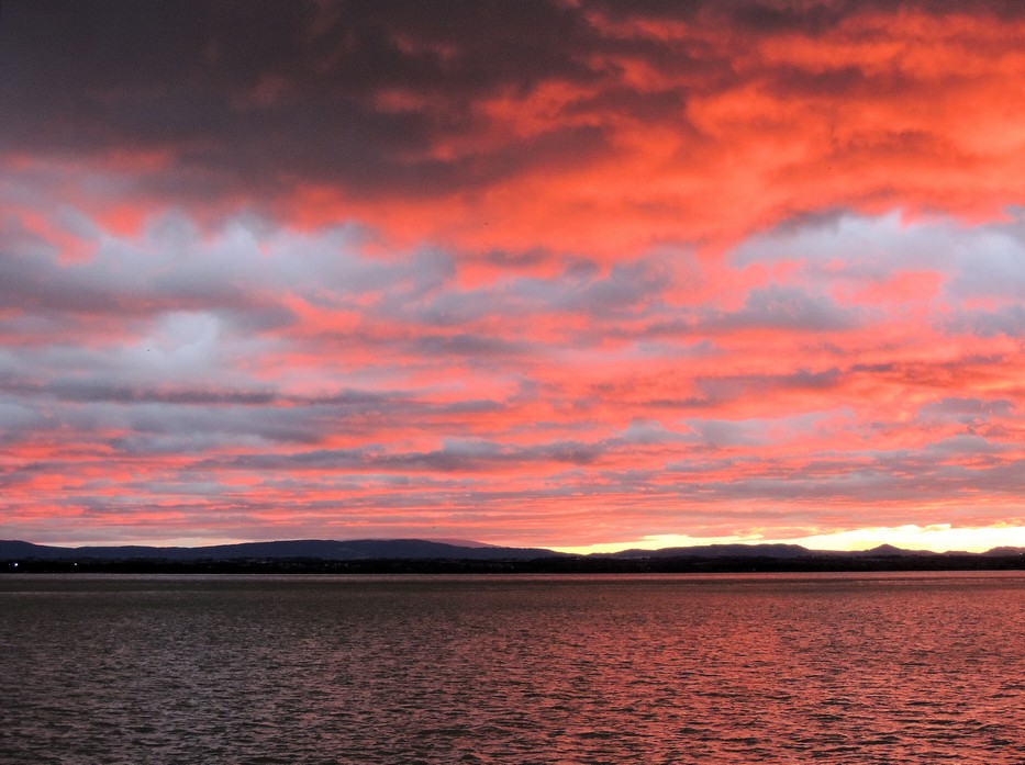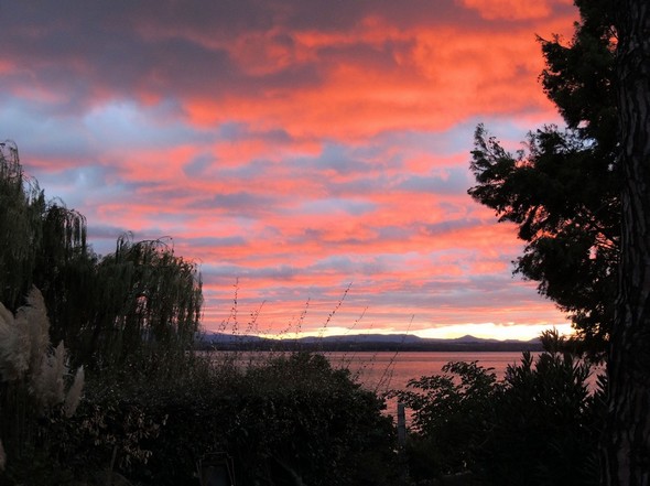 Coucher de soleil sur le lac Trasimène. Juste en face de notre jardin. Dimanche 17 janvier 2016 – 16:54