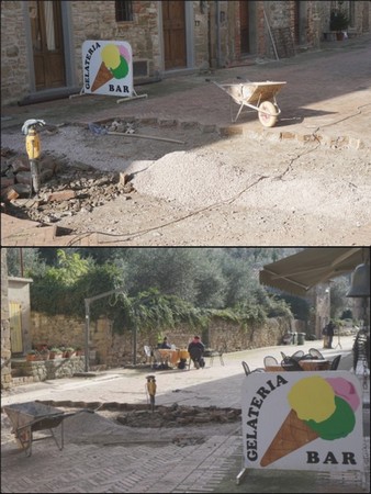 L’article d’aujourd’hui a pour but de vous informer qu’une seconde phase du travail de restauration de l’ancien pavement de la via Guglielmi a débuté.