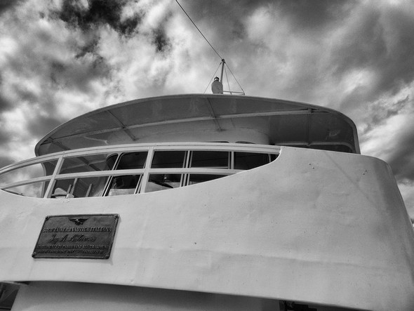 Plaque commémorative fixée juste sous la passerelle de navigation.