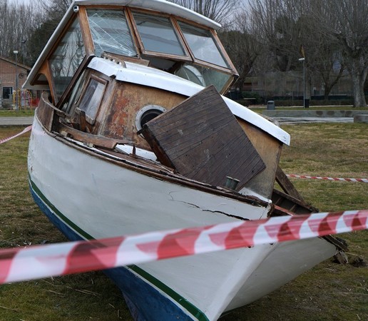 Si vous avez été attentifs aux dates, vous aurez constaté que la barque est restée échouée pendant 14 jours coincée contre et sous le pontile de Tuoro-Navaccia.