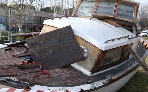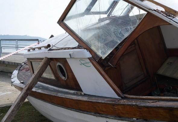 Se abbiate prestato attenzione alle date, avrete trovato che la barca è rimasta nell’acqua per 14 giorni, bloccata contro e sotto il pontile di Tuoro Navaccia.