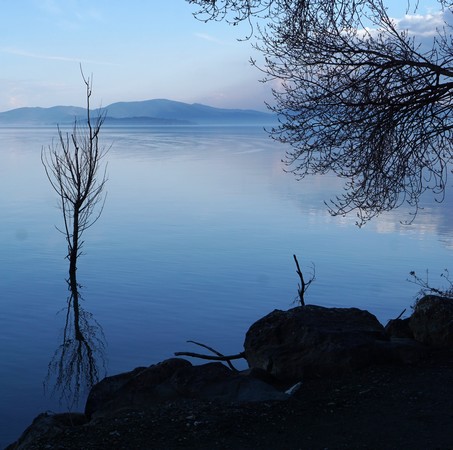 Et toujours cette beauté ineffable des bleus du lac Trasimène en cette fin de journée quasi printanière !