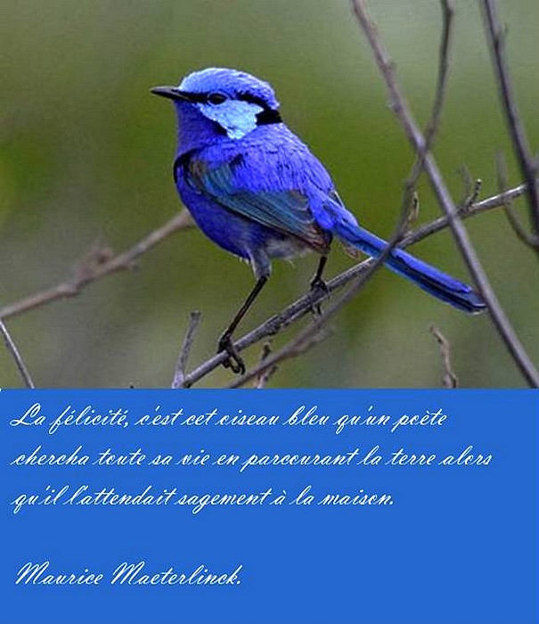 Le Bleu est le chemin de l’infini, où la réalité devient rêve, c’est d’ailleurs la couleur de l’oiseau du bonheur ( l’oiseau bleu).