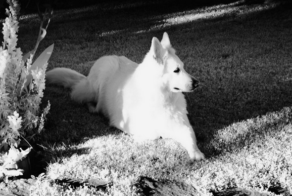 Infatti, ho effettuato un ripreso in mano della mia macchina fotografica a raggi infrarossi nel corso del mio percorso abituale sull’ Isola Maggiore con Aika, il mio pastore svizzero bianco.