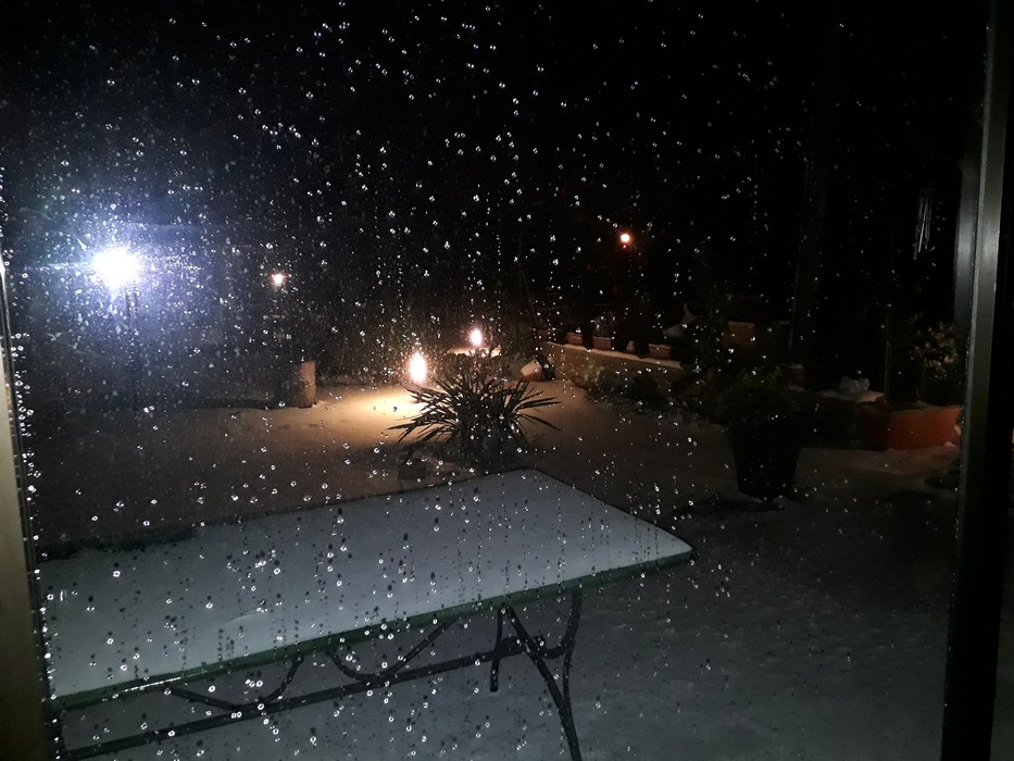 Une couche déjà respectable sur la table de la terrasse. 26 février 2018 – 02:50