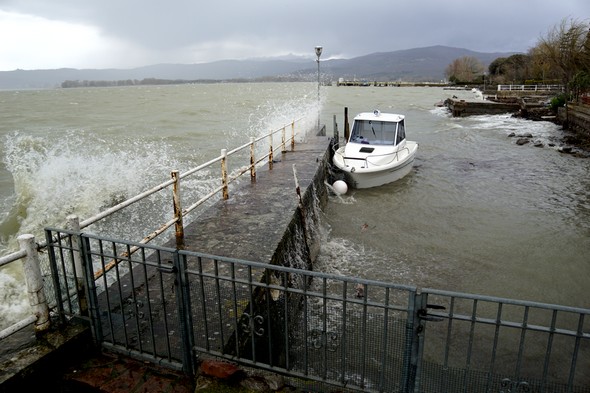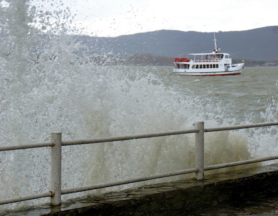En 2015 – (Lac Trasimène à son niveau le plus élevé!) – et en 2016, j’ai déjà présenté d’autres versions de ce spectacle inoubliable et sans cesse renouvelé : le soulèvement de vagues agressives et l’assaut de notre digue.