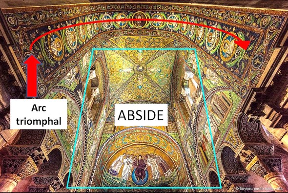L’examen des édifices de Ravenne(cfr. ci-dessus) confirme « l’importance de l’arc dans la définition de la première architecture officielle chrétienne, parallèlement à un rôle majeur de vecteur de l’iconographie…».