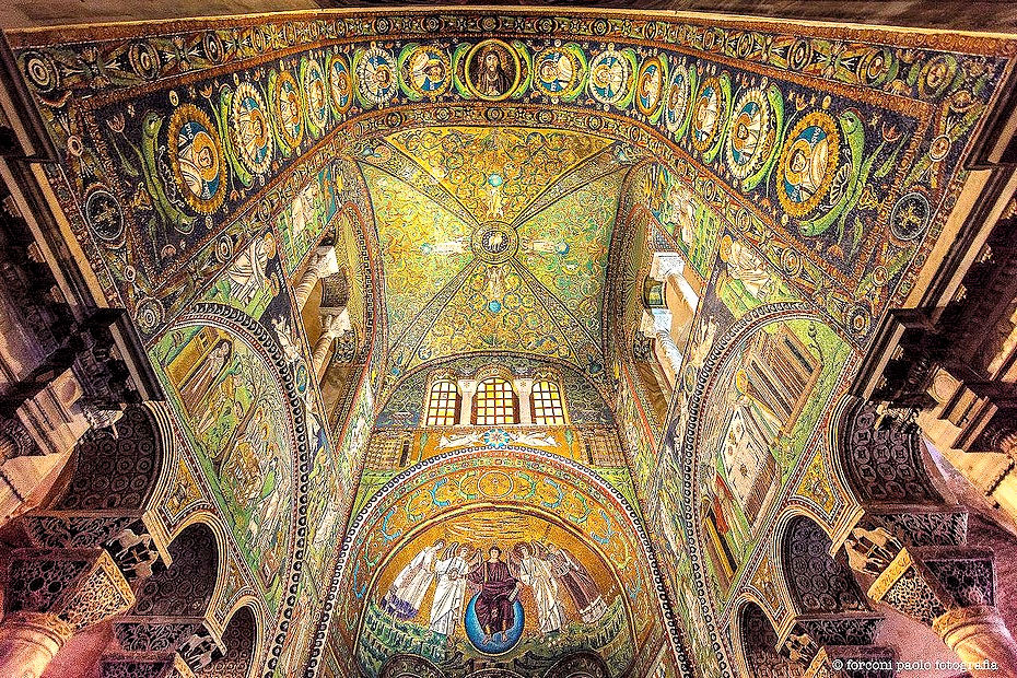 Un exemple exceptionnel d’arc triomphal et d’abside. Chapelle de la Basilique Saint-Vital à Ravenne.