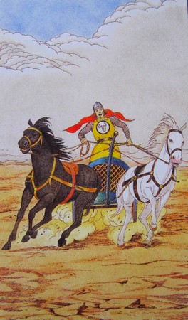 Septième arcane majeure du tarot de Marseille. Tarot de Sharman-Caselli, 2002. Le char est écartelé entre deux directions opposées !