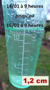 L’apport direct d’eau de pluie des dernières quarante-huit heures est donc de 1,9 centimètres par mètre2.